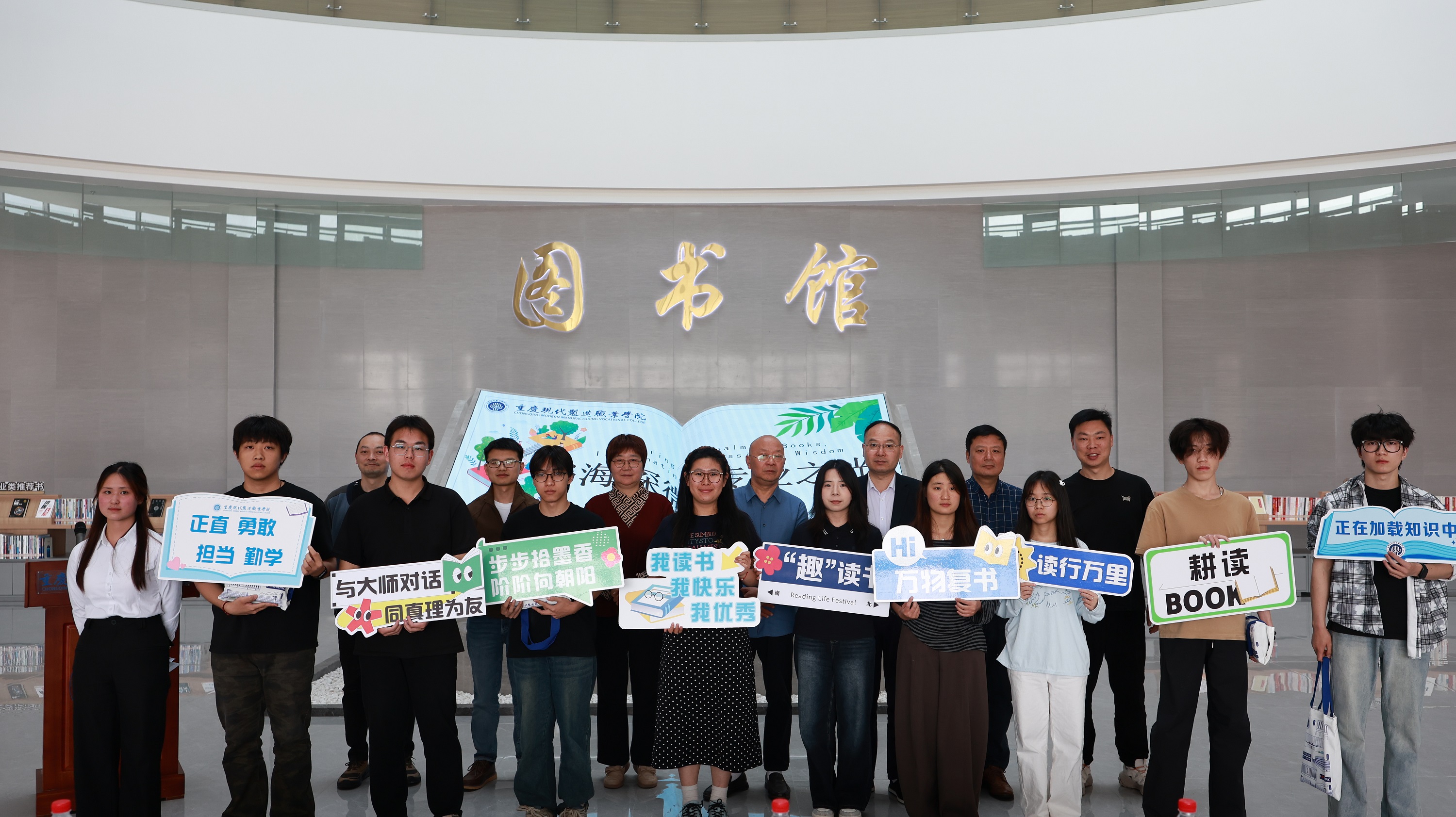 4月23日第31个世界读书日当天,重庆现代制造职业学院以“书海探微 专业之光”为主题的世界读书日活动在学校图书馆一楼大厅隆重举办。活动于14:30正式启幕,由学生代表主持,党委书记雷道海、党委副书记李才俊及学校相关部门负责人出席,全体师生代表齐聚一堂,共赴这场书香之约。